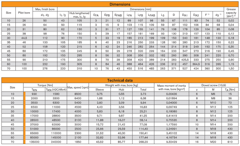 • The interior space of the coupling is sealed via O-rings (NBR 70 ShA). The feather keyways must be sealed against escape of lubricant with assembly.