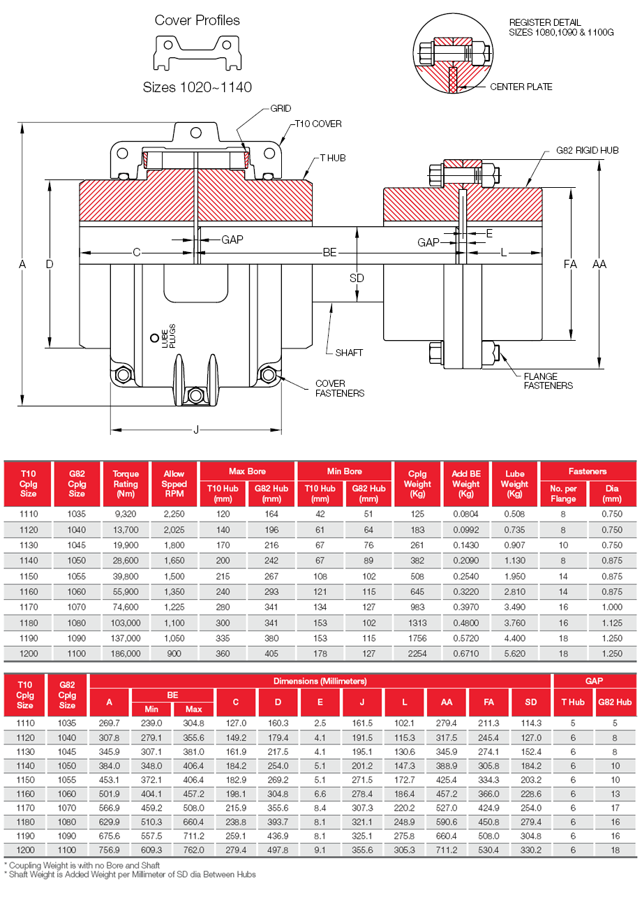 COUPLINGS TAPER GRID TYPE T10&T82 KCP