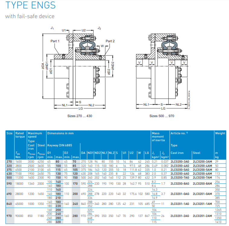 COUPLINGS JAW FLENDER ELPEX FLEXIBLE RING TYPE ENGS
