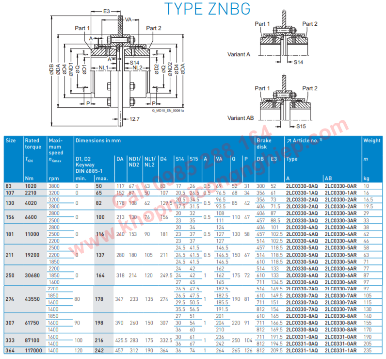 COUPLINGS JAW FLENDER ZAPEX ZN TYPE ZNBG