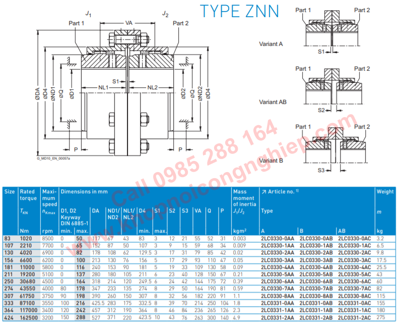 COUPLINGS JAW FLENDER ZAPEX ZN TYPE ZNN
