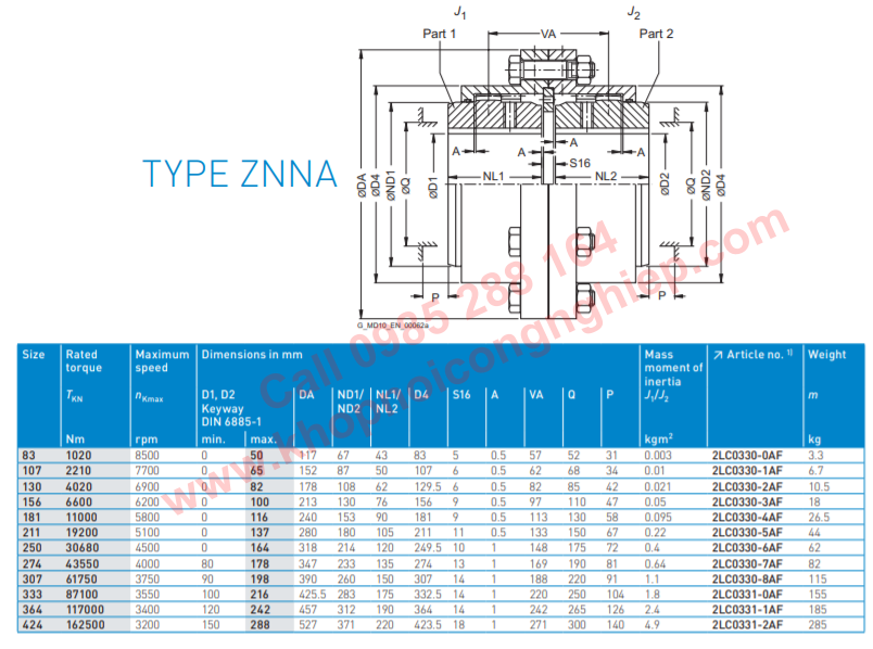 COUPLINGS JAW FLENDER ZAPEX ZN TYPE ZNNA