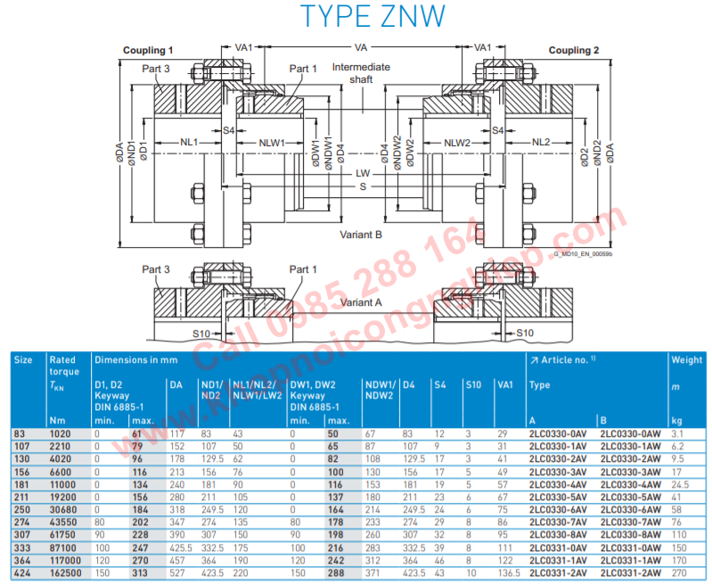COUPLINGS JAW FLENDER ZAPEX ZN TYPE ZNW