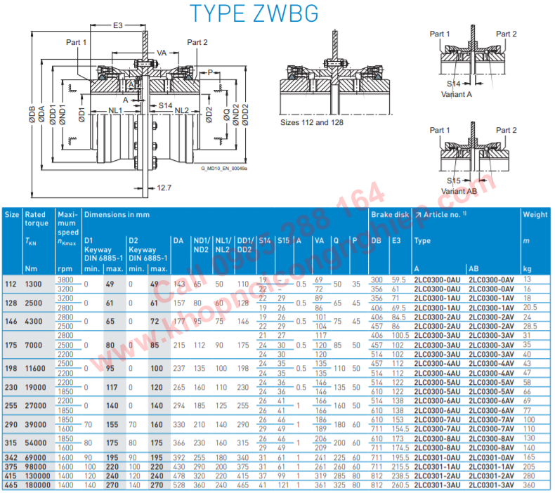 COUPLINGS JAW FLENDER ZAPEX ZW TYPE ZWBG