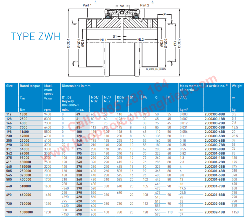 COUPLINGS JAW FLENDER ZAPEX ZW TYPE ZWH