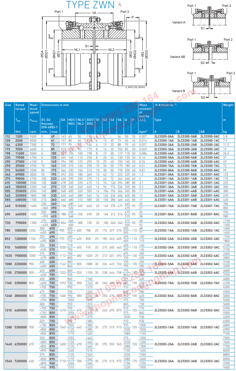 COUPLINGS JAW FLENDER ZAPEX ZW TYPE ZWN