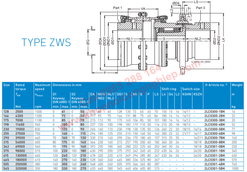 COUPLINGS JAW FLENDER ZAPEX ZW TYPE ZWS