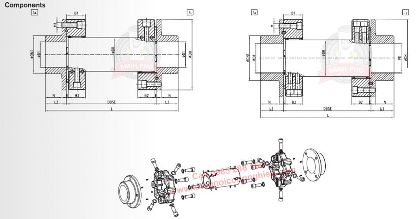 • Both hubs are available as type 1.0 (feather keyway and setscrew), 3.0 (spline toothing) and 3.1 (spline/clamping hub N).