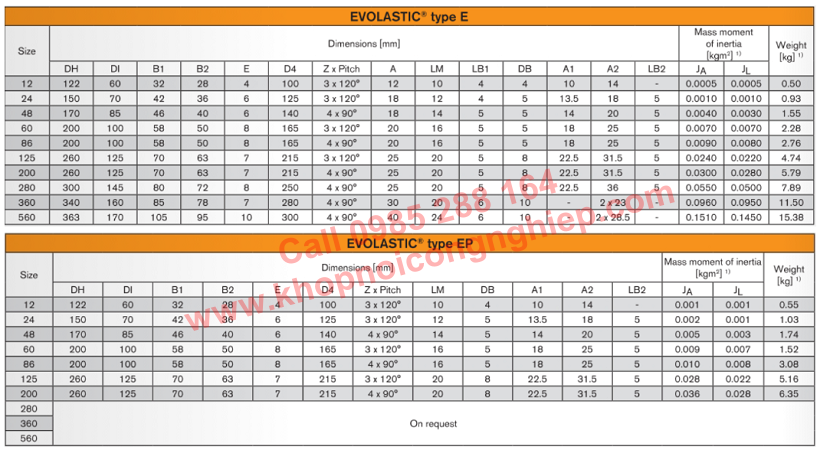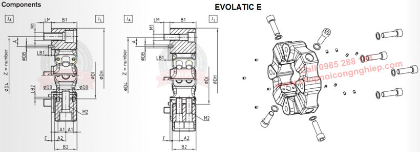 • EVOLASTIC couplings type E are supplied with a mounting kit consisting of cylinder head screws, locking washers and positioning sleeves.