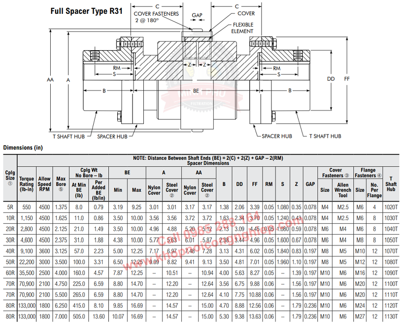 FALK WRAPFLEX FULL R31 SPACER ELASTOMERIC COUPLINGS