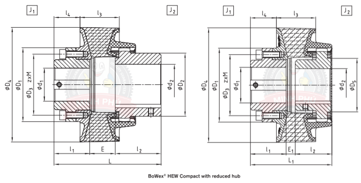 • Các khớp nối bánh răng BoWex có thể được lắp ráp theo thiết kế dọc hoặc ngang.