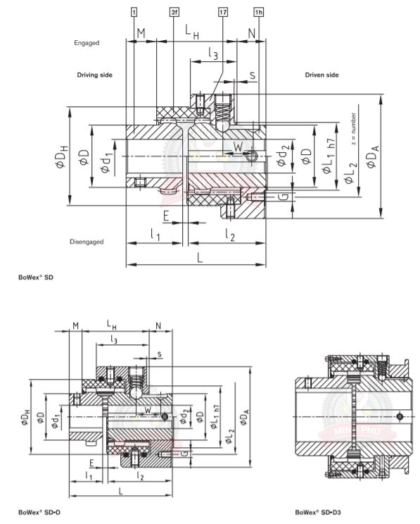 • Các khớp nối bánh răng BoWex có thể được lắp ráp theo thiết kế dọc hoặc ngang.