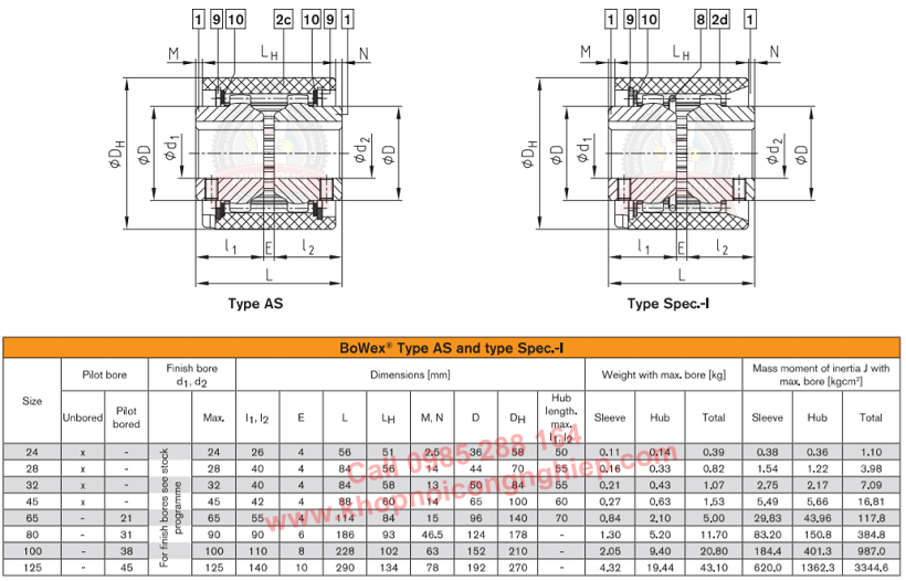 • Các khớp nối bánh răng BoWex có thể được lắp ráp theo thiết kế dọc hoặc ngang.