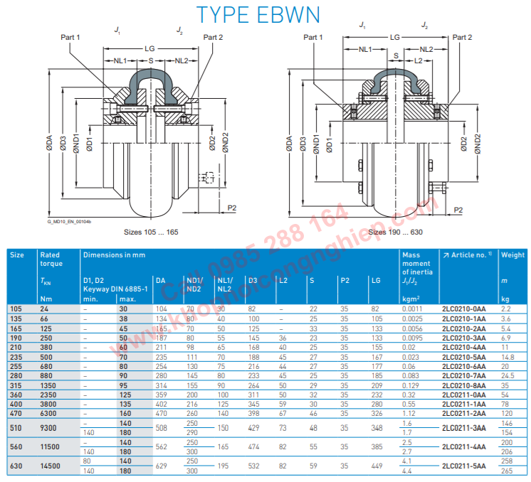 KHỚP NỐI TRỤC FLENDER ELPEX-B RUBBER TIRE TYPE EBWN