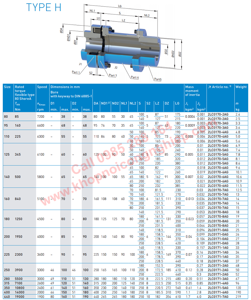KHỚP NỐI TRỤC FLENDER N-EUPEX TYPE H