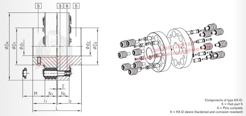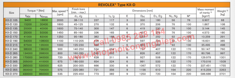 Thông số Size khớp nối KTR REVOLEX KX-D GANG: