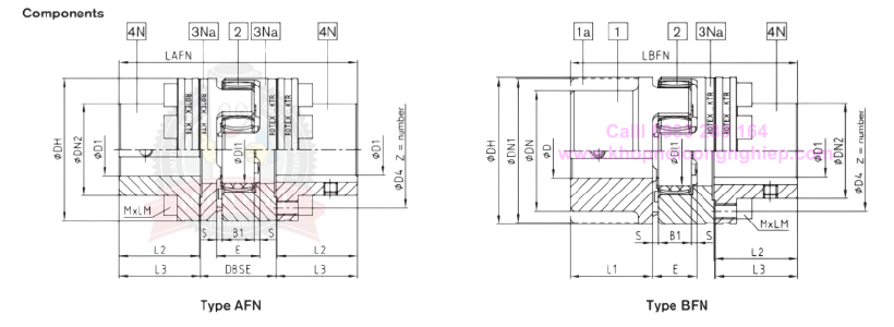 Thông số Size khớp nối trục KTR ROTEX AFN: