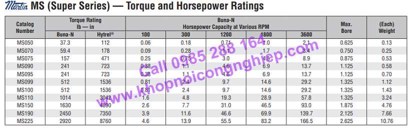 KHỚP NỐI TRỤC SERIES MS MARTIN